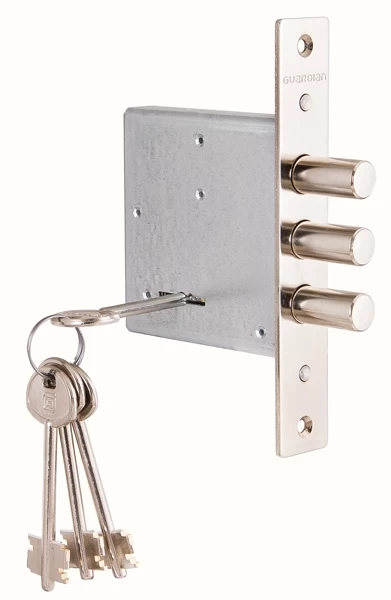 ЗВ 10.01 - Замок врезной сувальдный верхний. 2-ой класс безопасности. Защита от наиболее распространенных методов вскрытия: защита от вскрытия отмычкой - ложные пазы на стойке и сувальдах, увеличенная жесткость пружин сувальд; защита от "свертыша" - ослабленный зуб рейки хвостовика. Замок предназначен для установки в металлические и деревянные двери, шкафы и сейфы. Оптимально устанавливать в паре с замком Гардиан 12.11