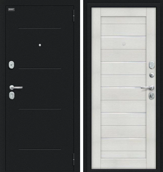 Надежная входная Браво Техно Kale Букле черное/Bianco Veralinga премиум класса по цене 34 333 руб. Большая толщина стали защитит от проникновения в ваш дом, квартиру или коттедж. Используется очень качественная фурнитура: замки, цилиндры, ручки, защелки. Покрытие и отделка двери изготовлено под внимательным контролем производителя. Дверь имеет долгий срок службы и гарантию.