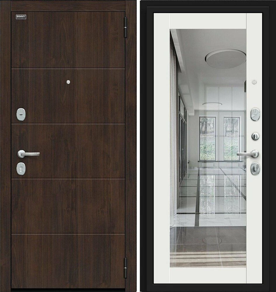 Надежная входная Дверь Браво Флэт Kale Almon/Off-white премиум класса по цене 41 883 руб. Большая толщина стали защитит от проникновения в ваш дом, квартиру или коттедж. Используется очень качественная фурнитура: замки, цилиндры, ручки, защелки. Покрытие и отделка двери изготовлено под внимательным контролем производителя. Дверь имеет долгий срок службы и гарантию.