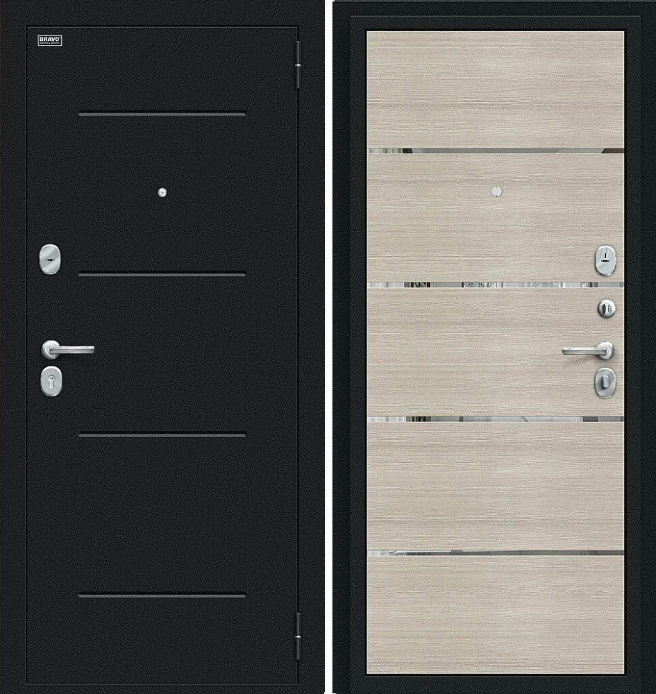 Надежная входная Дверь Браво Лайн Букле черное/Cappuccino Veralinga премиум класса по цене 30 153 руб. Большая толщина стали защитит от проникновения в ваш дом, квартиру или коттедж. Используется очень качественная фурнитура: замки, цилиндры, ручки, защелки. Покрытие и отделка двери изготовлено под внимательным контролем производителя. Дверь имеет долгий срок службы и гарантию.