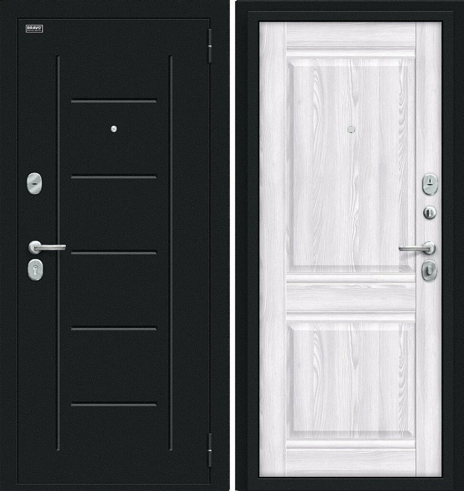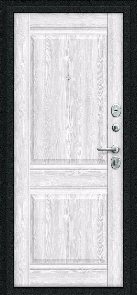 Надежная входная Дверь Браво Некст Kale Букле черное/Riviera Ice премиум класса по цене 35 933 руб. Большая толщина стали защитит от проникновения в ваш дом, квартиру или коттедж. Используется очень качественная фурнитура: замки, цилиндры, ручки, защелки. Покрытие и отделка двери изготовлено под внимательным контролем производителя. Дверь имеет долгий срок службы и гарантию.