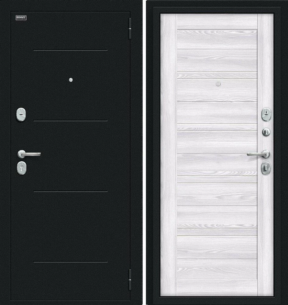 Надежная входная Дверь Браво Сити Kale Букле черное/Riviera Ice премиум класса по цене 35 583 руб. Большая толщина стали защитит от проникновения в ваш дом, квартиру или коттедж. Используется очень качественная фурнитура: замки, цилиндры, ручки, защелки. Покрытие и отделка двери изготовлено под внимательным контролем производителя. Дверь имеет долгий срок службы и гарантию.