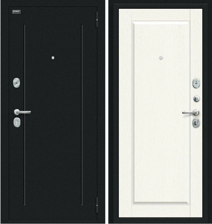 Надежная входная Дверь Браво Сьют Kale Букле черное White Wood премиум класса по цене 36 553 руб. Большая толщина стали защитит от проникновения в ваш дом, квартиру или коттедж. Используется очень качественная фурнитура: замки, цилиндры, ручки, защелки. Покрытие и отделка двери изготовлено под внимательным контролем производителя. Дверь имеет долгий срок службы и гарантию.