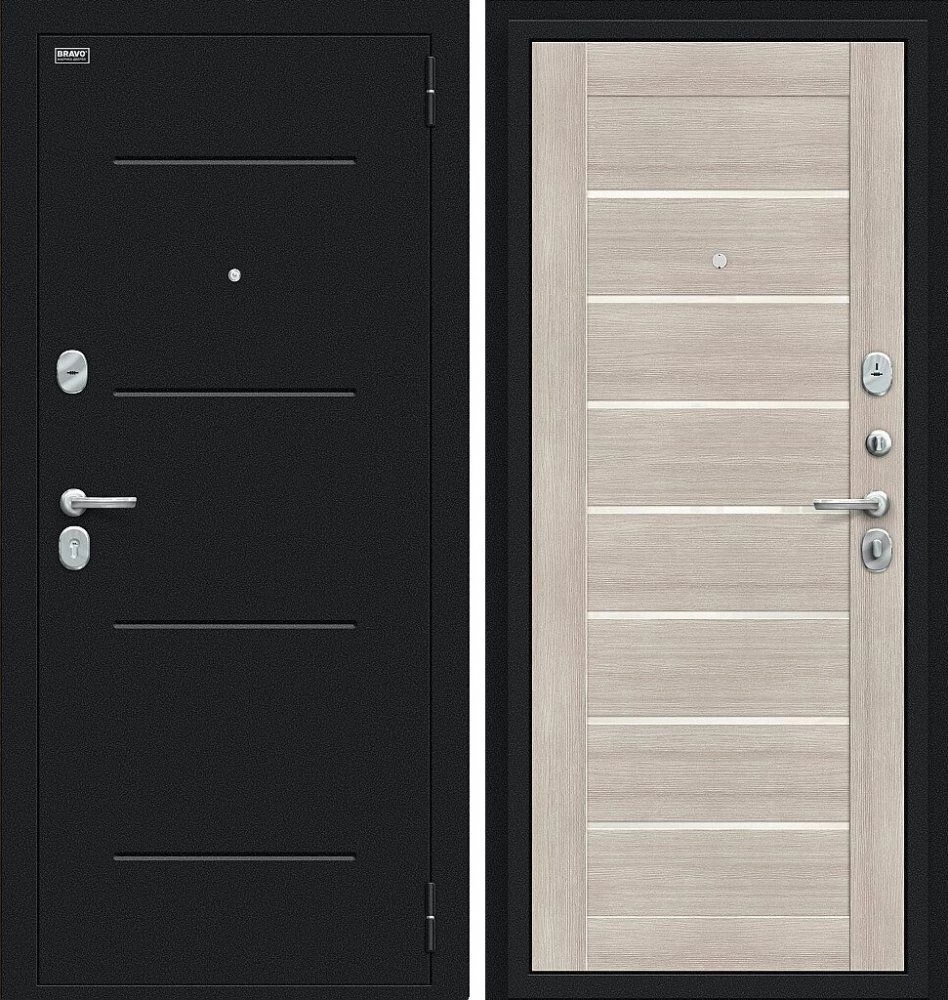 Надежная входная Дверь Браво Техно Букле черное/Cappuccino Veralinga премиум класса по цене 31 433 руб. Большая толщина стали защитит от проникновения в ваш дом, квартиру или коттедж. Используется очень качественная фурнитура: замки, цилиндры, ручки, защелки. Покрытие и отделка двери изготовлено под внимательным контролем производителя. Дверь имеет долгий срок службы и гарантию.