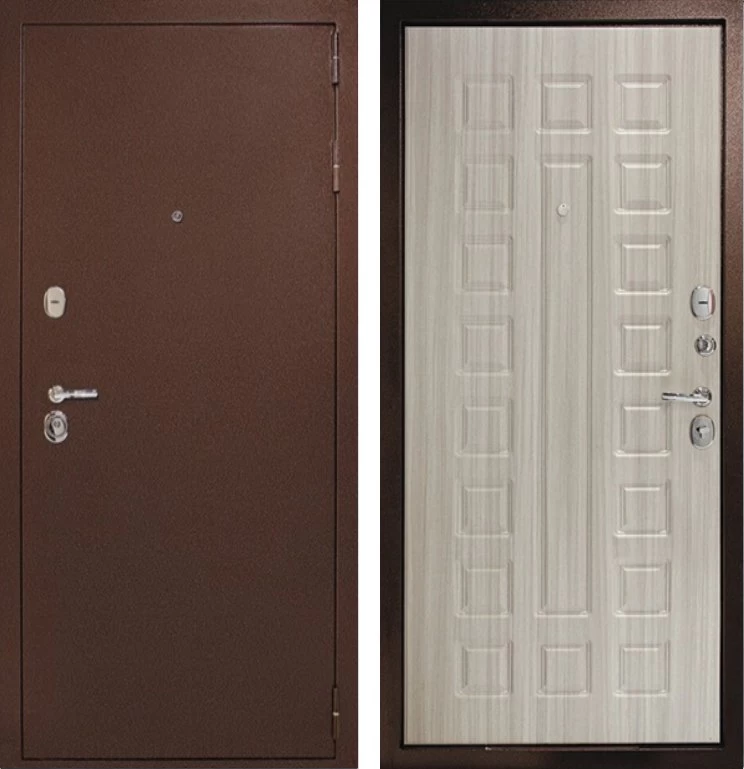 Надежная входная Дверь Рубикон 1 Медь Сандал белый премиум класса по цене 32 903 руб. Большая толщина стали защитит от проникновения в ваш дом, квартиру или коттедж. Используется очень качественная фурнитура: замки, цилиндры, ручки, защелки. Покрытие и отделка двери изготовлено под внимательным контролем производителя. Дверь имеет долгий срок службы и гарантию.
